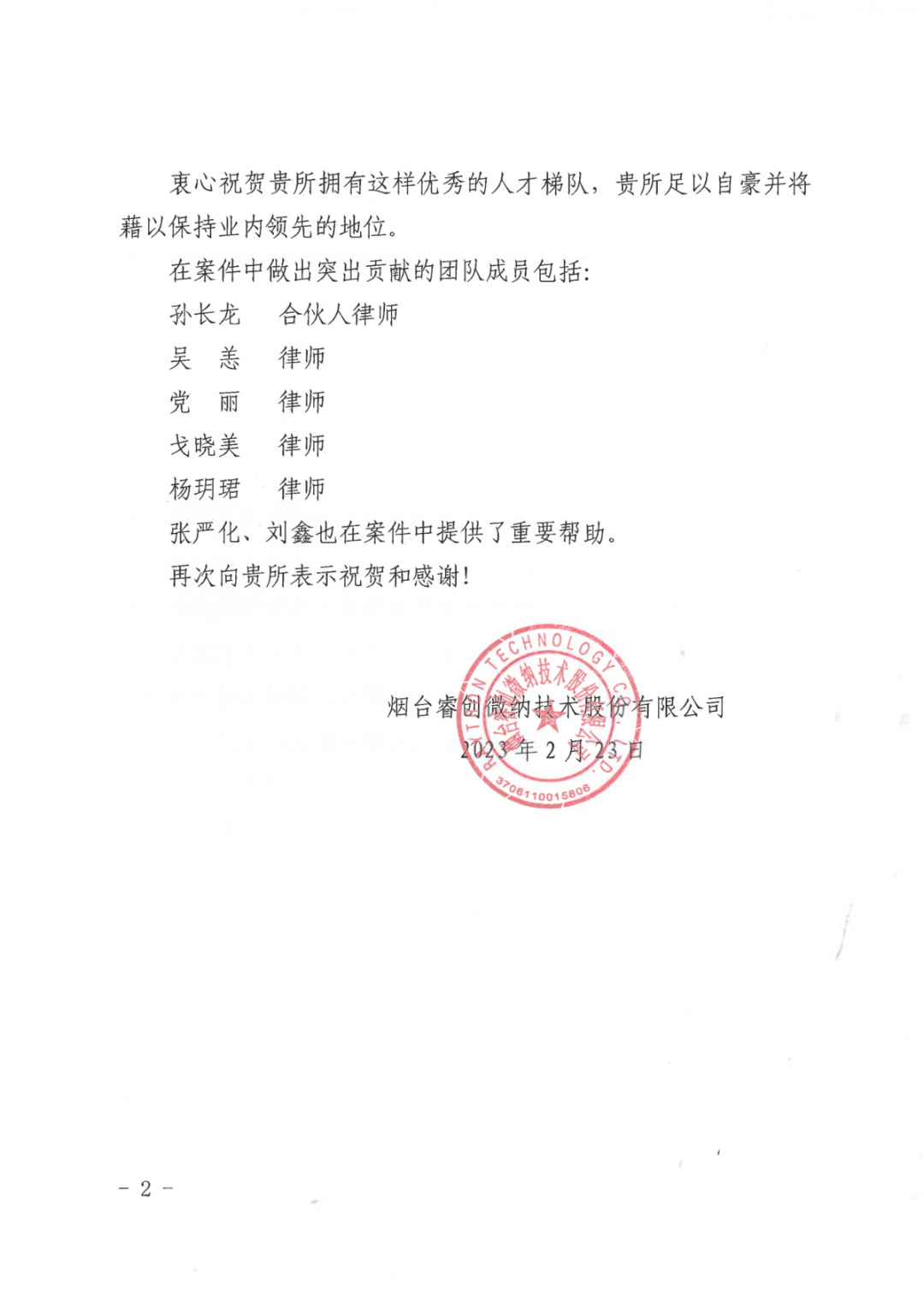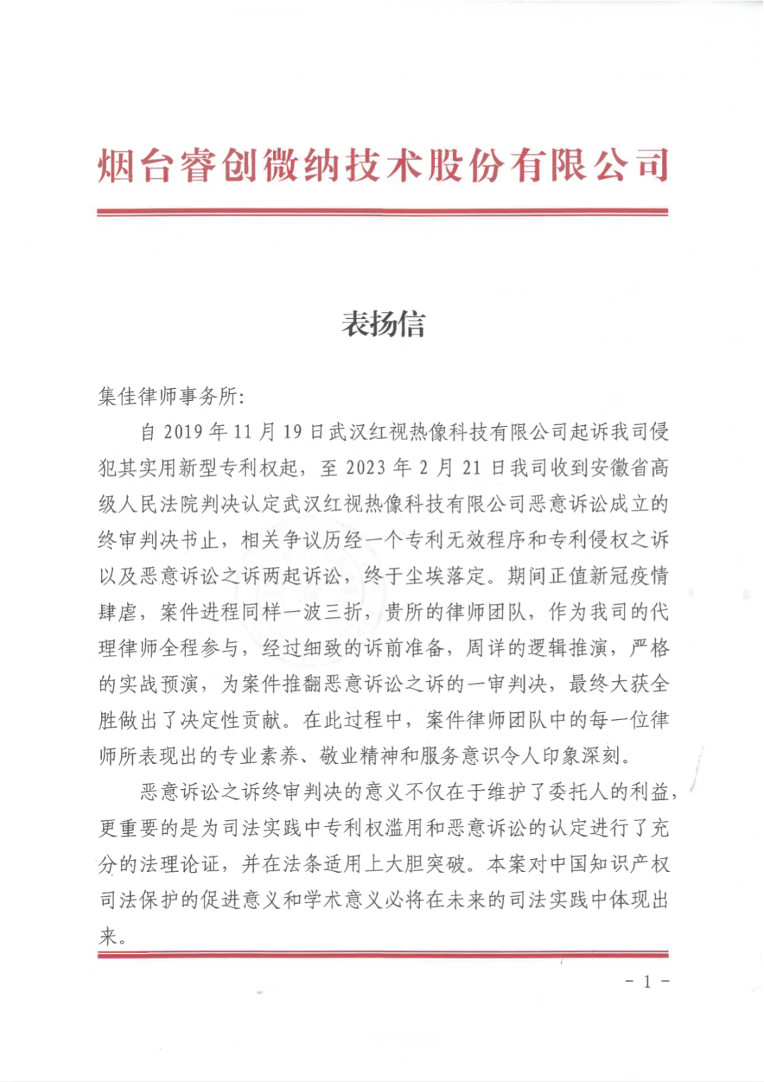 最后,感谢睿创集团知识产权团队对于本案的积极贡献,以及对于斗球体育直播的支持与信任,共同成就恶意诉讼案的最终胜利!